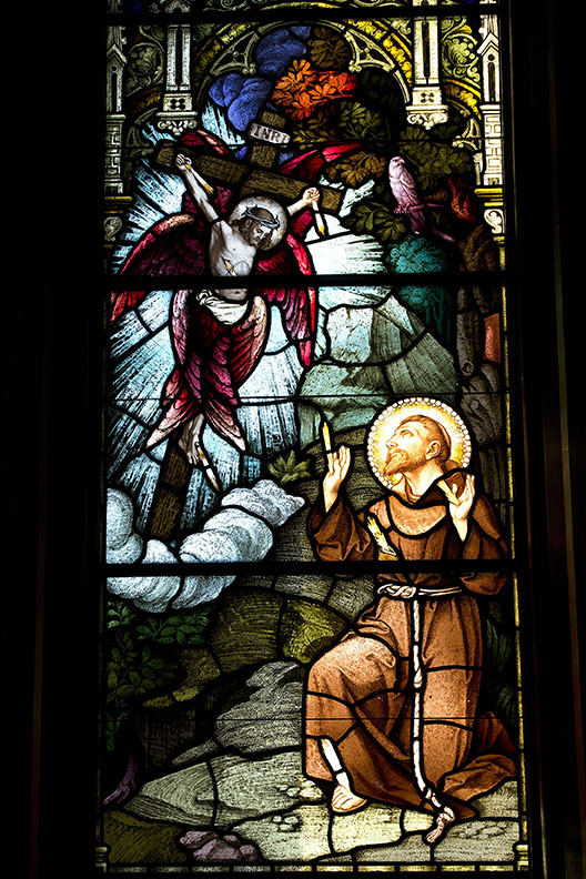 One morning in 1224, two years before his death, Francis was absorbed in prayer on a slope of Mount La Verna when a seraph with six wings appeared to him. When the vision disappeared, the wounds of Jesus were imprinted on Francis’ body. Until his death, Francis tried to conceal the wounds to the best of his ability. However, his brothers knew about them, and reliable witnesses attested to this extraordinary event.